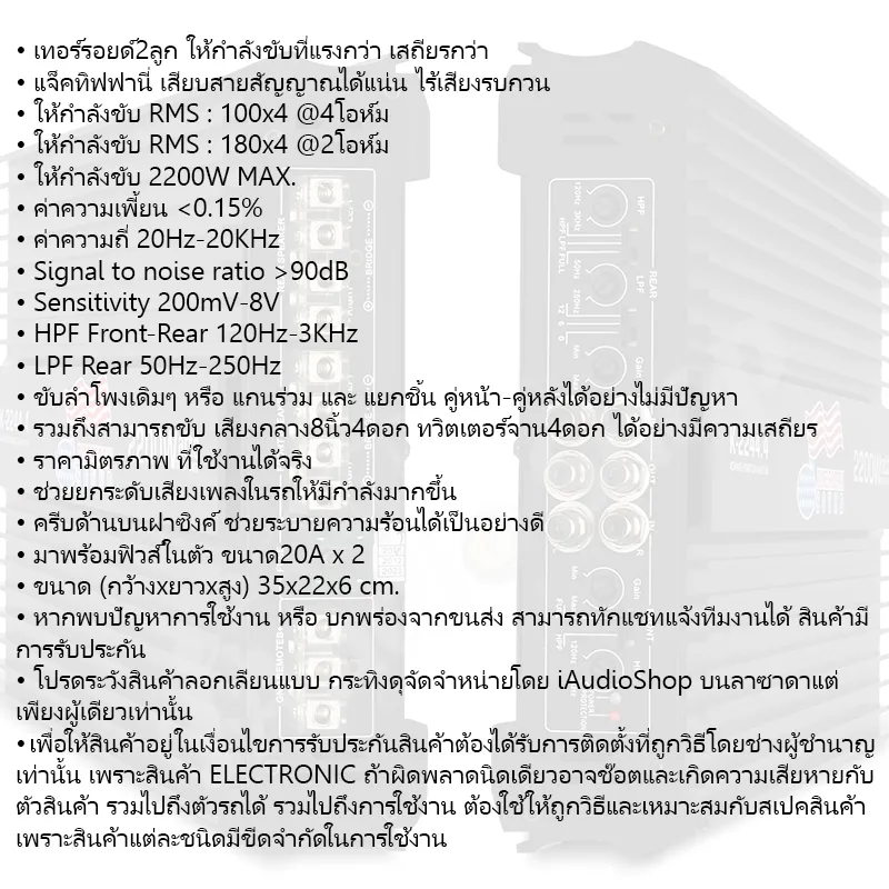 ให้กำลังขับ RMS : 180x4 @2โอห์ม