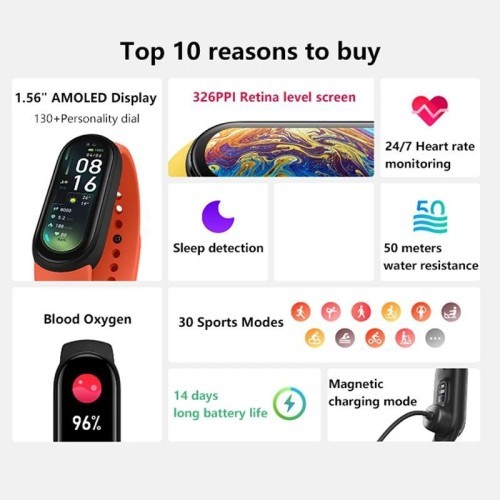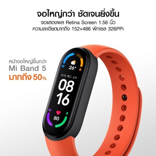 - หน้าจอมีขนาดใหญ่กว่า Mi Band 5 มากถึง 50%