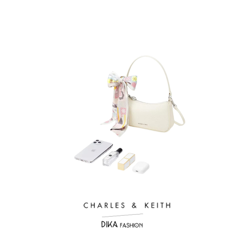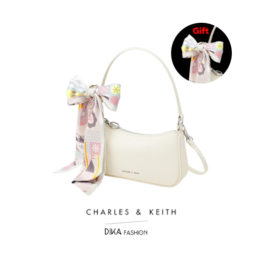 【พร้อมส่ง】Charles&keith กระเป๋าสะพายข้างผญ Handbags Crossbody Underarm Bags CK2-80151122 French bag Cream. One