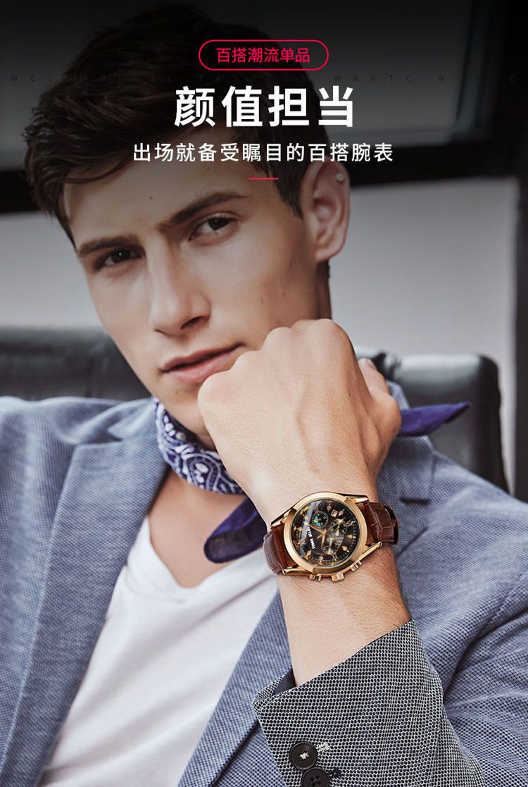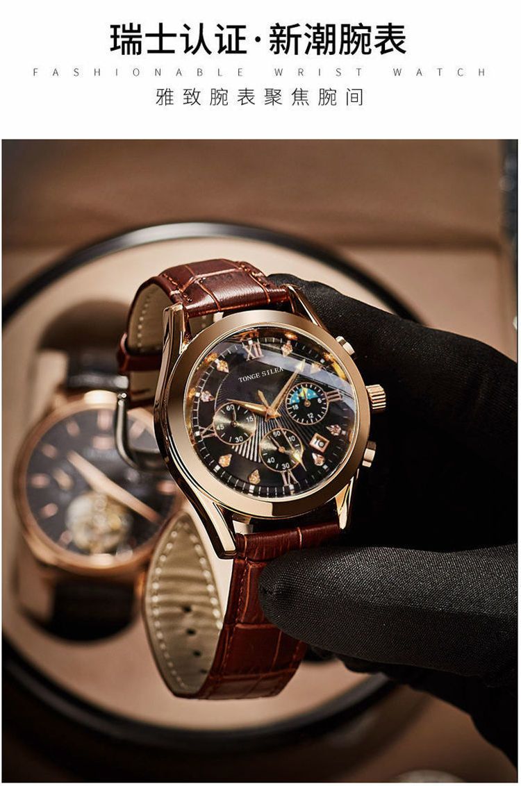 Swiss new automatic men's watch waterproof luminous Swiss new automatic men's watch waterproof luminous Black face black shell