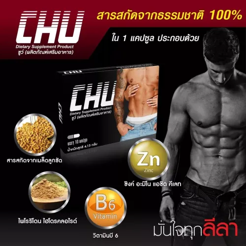 10 แคปซูล/กล่องCHU (ชูว์) อาหารเสริมสำหรับท่านชาย ให้ ใหญ่ อึก ถึก ทน ช่วยในเรื่อง : ️ ฟื้นฟูสมรรถภาพทางเพศ ️ ป้องกันภาวะมีบุตรยาก และ เป็นหมัน ️ มีผลในการปรับปรุงอารมณ์รับรู้ทางเพศ ️ ลดอาการเซ็กเสื่อม ️ เพิ่มประสิทธิภาพการมีเพศสัมสัมพันธ์ ️ 15 นาทีดีด ออกฤทธิ์ยาวนาน ️ อึดมากขึ้น ชะลอการหลั่งไว ️ ผิวขาว หน้าใส่ ลดสิว สิวอักเสบ ️ ช่วยเพิ่มขนาดให้ใหญ่ ยาวยิ่งขี้น ️ เพิ่มปริมาณน้ำเชื้อ น้ำเชื้อหลั่งพุ่งฉีดแรงมากขึ้น ️ เห็นผลตั้งแต่เม็ดแรก วิธีทาน : กินก่อนกิตกรรม 15 นาที เห็นผล อึดมาก แข็ง ใหญ่ ยาว สำหรับผู้ที่ต้องการเพิ่มขนาด ใหญ่ยาวถาวร ให้ทานต่อเนื่อง อย่างน้อย 1 เดือน ทุกวัน 1 เม็ด ก่อนนอน สำหรับท่านชายที่เสื่อมสมรรถภาพทางเพศและไม่ค่อยแข็ง ให้ทานต่อเนื่อง อย่างน้อย 1 เดือน ทุกวัน 1 เม็ด ก่อนนอน