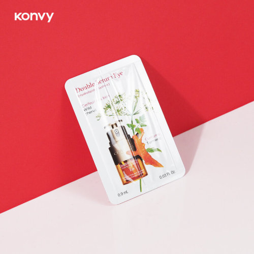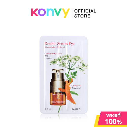 Clarins Double Serum Eye 0.9ml ยกระดับการบำรุงสองเท่า เพื่อผิวรอบดวงตาดูอ่อนเยาว์ กับเซรั่มบำรุงผิวรอบดวงตา นวัตกรรมเซรั่มสองเนื้อสัมผัสอันเป็นเอกลักษณ์ของคลาแรงส์ ในรูปแบบ Gel + Emulsion ผสานส่วนผสมจากพืชพรรณธรรมชาติ ให้ผิวรอบดวงตาดูเปล่งประกายสดใส แลดูอ่อนเยาว์