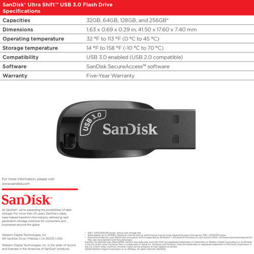 SanDisk Ultra Shift USB 3.0 Flash Drive Black compact design