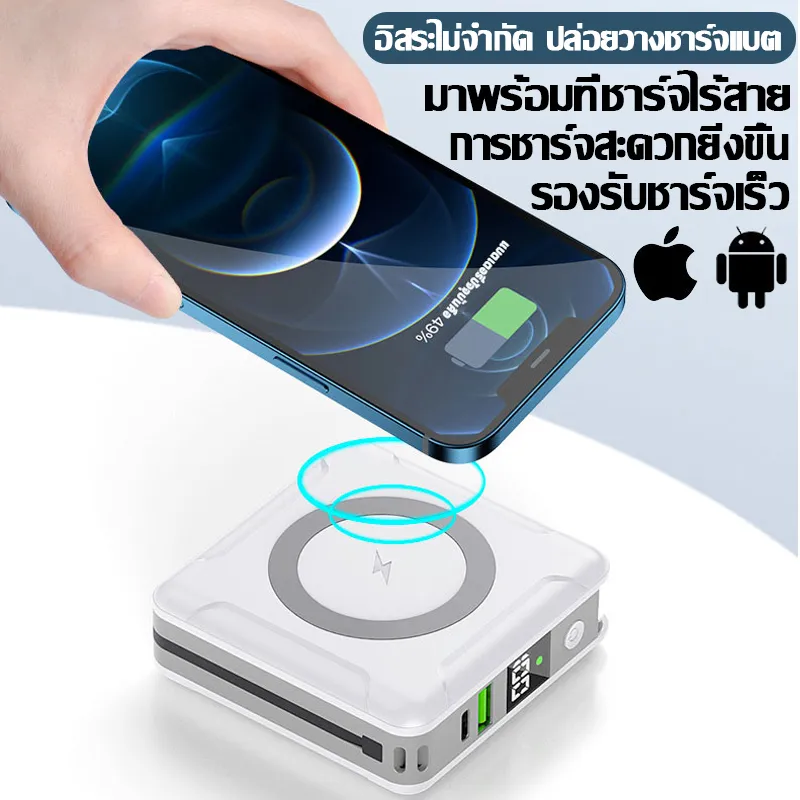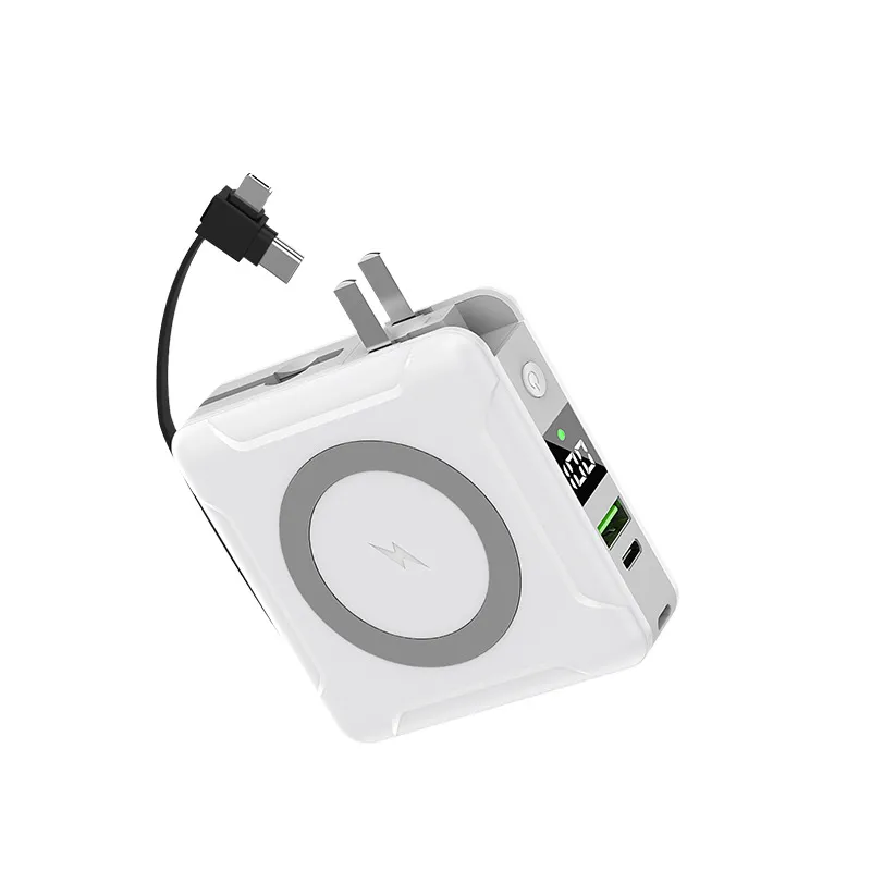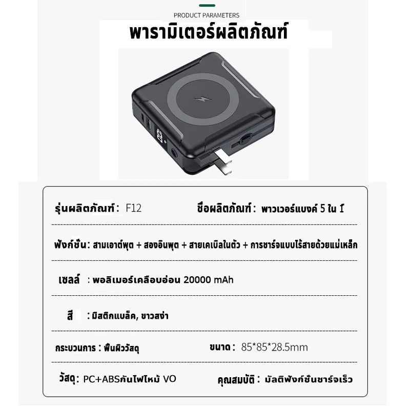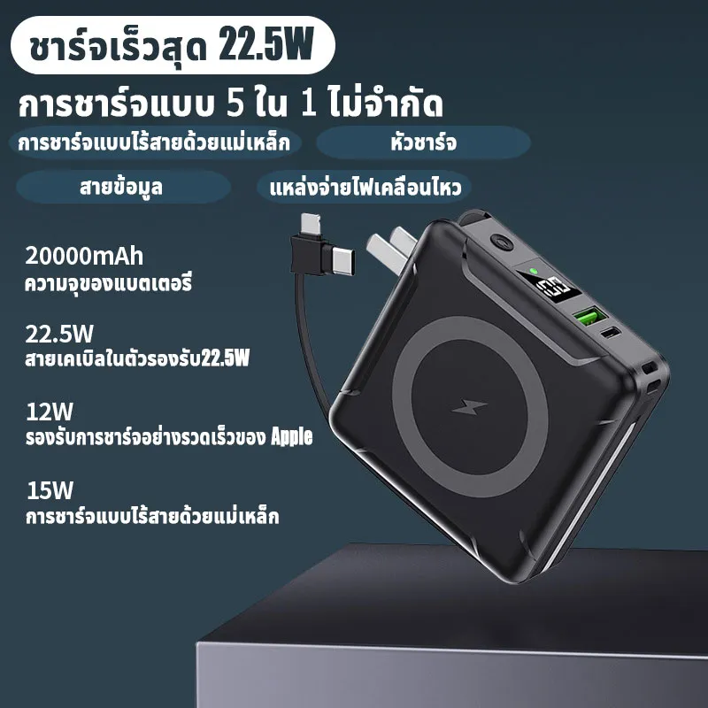 ฟังก์ชั่น: สามเอาต์พุต + สองอินพุต + สายเคเบิลในตัว + การชาร์จแบบไร้สายด้วยแม่เหล็ก
