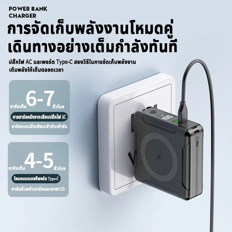 SUNESY พาวเวอร์แบงค์20000mAh 22.5W PDการชาร์จเร็ว พาเวอร์แบงค์ 15Wการชาร์จด้วยแม่เหล็ก ไร้สาย แบตสำรอง ชาร์จได้พร้อม 4 เครื่อง4ช่องชาร์จ ใช้ได้กับทุกรุ่นทุกยี่ห้อ พาวเวอแบงค์แท้ แบตเตอรี่สำรอง พาวเวอร์เเบงค์ เวอร์เวอร์แบงค์ เพวเวอร์แบงค Power Bank ของแท้ cool black One