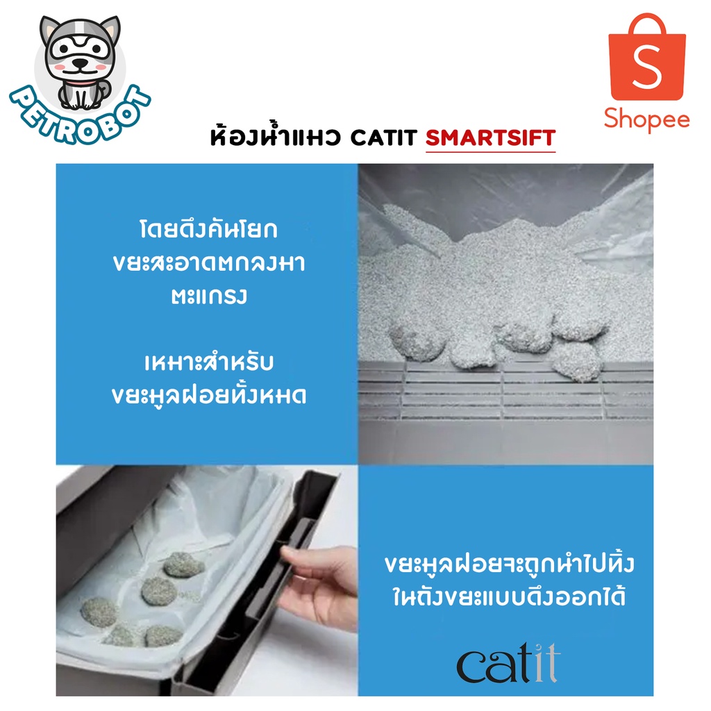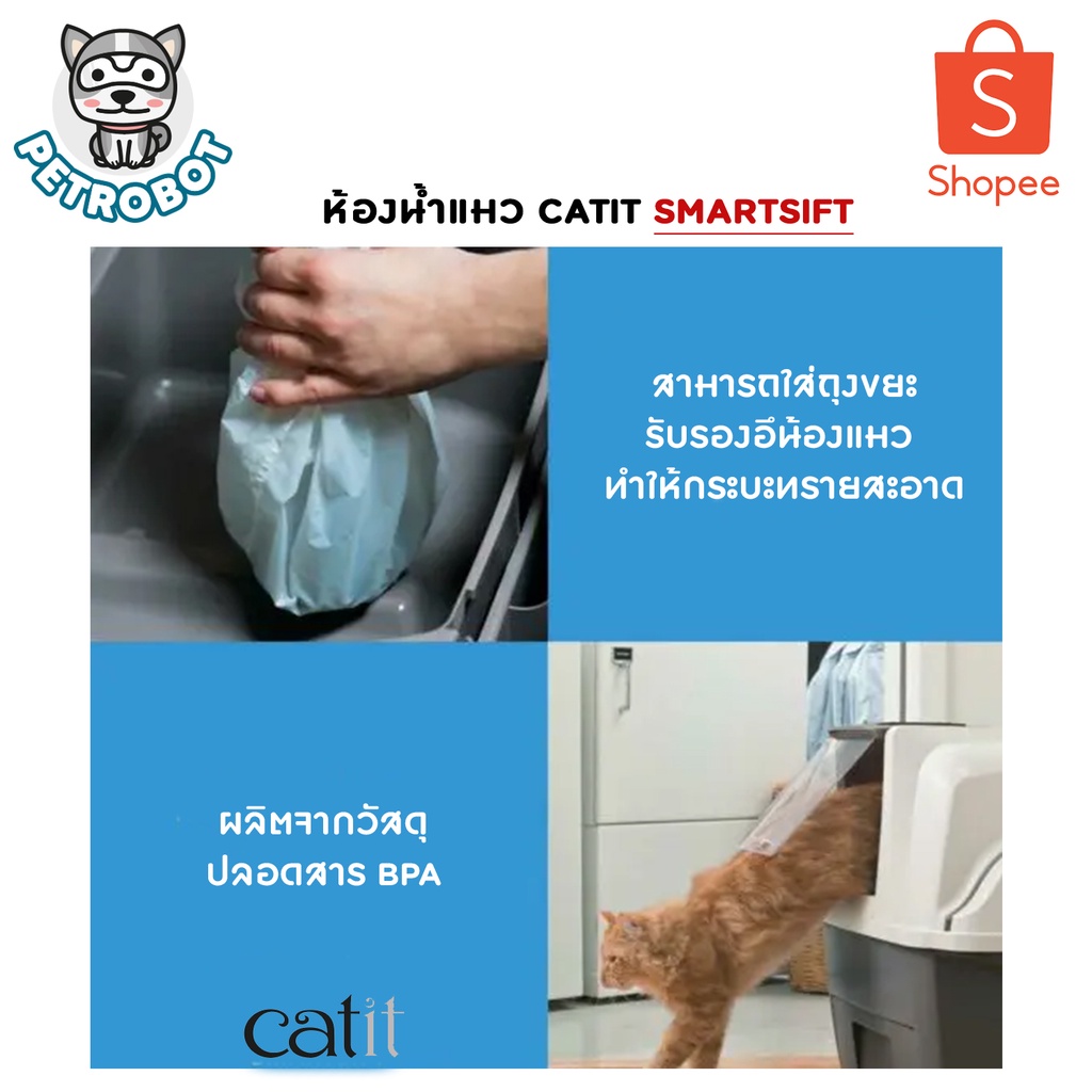 เพื่อความสะดวกสูงสุด แนะนำให้ใช้ร่วมกับถุง Catit Smartsift สำหรับรองกระบะด้านใน และลิ้นชักด้านนอก (ขายแยกต่างหาก กล่องละ 12 ชิ้น)