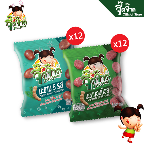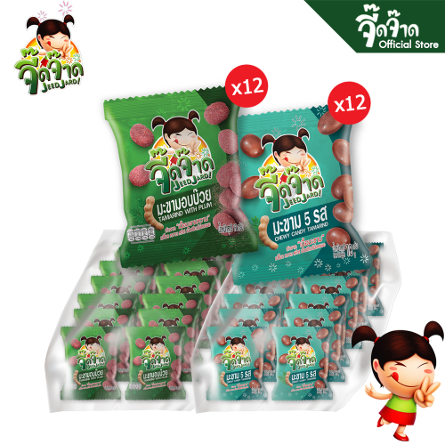 1. จี๊ดจ๊าด มะขามอบบ๊วย ขนาด 12 กรัม 1 กล่อง (แพ็ค 12 ซอง)