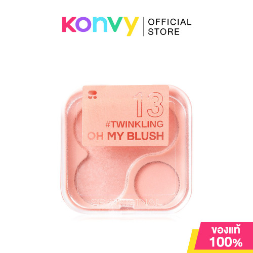 2P Original Oh My Blush 4.3g #13 Twinkling บลัชออนไร้ฝุ่น นวัตกรรมใหม่ที่เพิ่มความพิเศษกว่ารุ่นเดิม มี 2 เนื้อสัมผัสในตลับเดียว ทั้งแมทและชิมเมอร์ เนื้อแป้งอัดแน่น เนียนละเอียด ปัดแล้วเรียบเนียนไปกับผิวหน้า ติดทนนาน เพิ่มเฉดสีใหม่ละมุนมากขึ้น สามารถใช้ทาได้ทั้งตาและแก้มโดยไม่เป็นคราบ