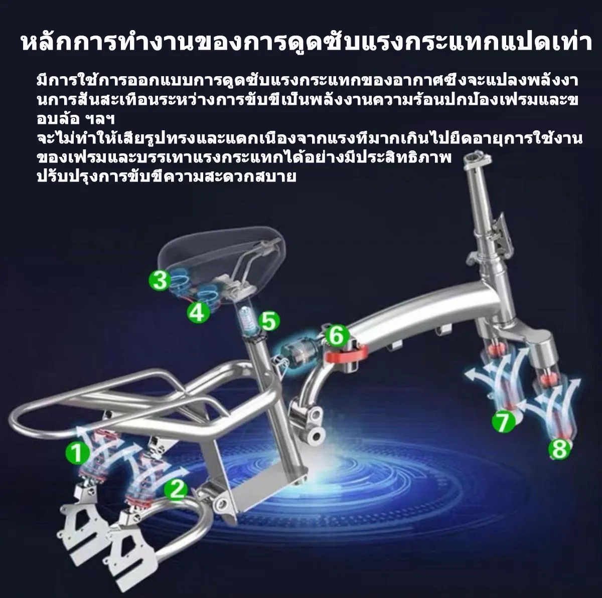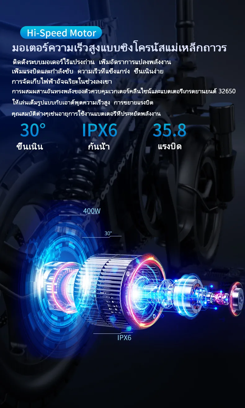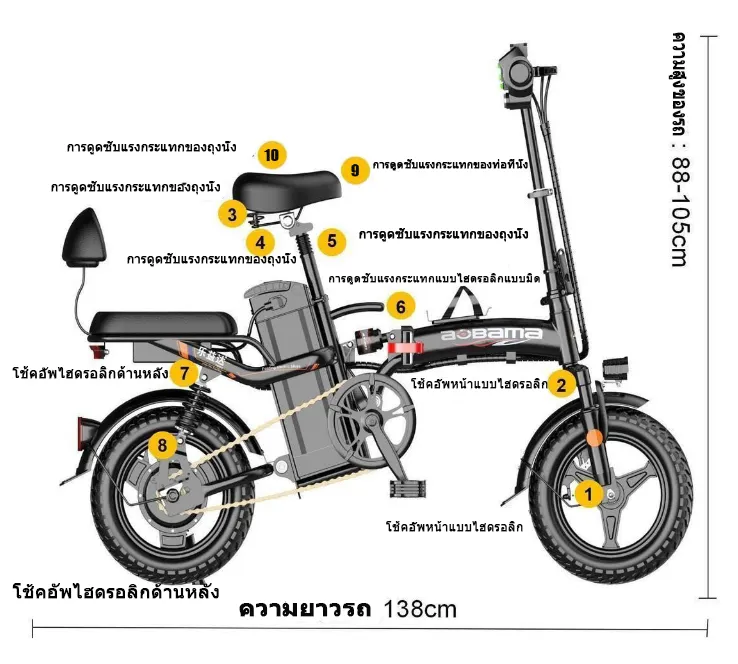 electric bike จักรยานไฟฟ้าพับได้ ขนาด 14นิ้ว แบตลิเที่ยม 48V ขับได้ไกลถึง40-200km ทำความเร็วได้25-40km/h รับน้ำหนัก 250KG การดูดซับแรงกระแทกแบบไฮดรอลิก7ระดับ