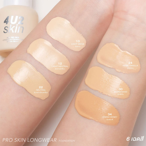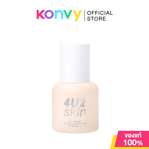 4U2 Skin Pro Skin Longwear Foundation SPF50+ PA++++ 35g #22 รองพื้นเนื้อแมทที่มอบการปกปิดแบบเนียนกริบ กลบทุกปัญหาผิวแต่ยังให้ผลลัพธ์ผิวที่เนียนสวยเป็นธรรมชาติ ควบคุมความมันยาวนาน 12 ชั่วโมง ด้วย OIL CAPTURE TECHNOLOGY ไม่เป็นคราบระหว่างวัน พร้อมด้วยสารบำรุง NIACINAMIDE, HYALURONIC COMPLEX และ TOCOPHERYL ACETATE ให้ผิวเนียนนุ่ม ชุ่มชื่น แลดูสุขภาพดี และมอบคุณสมบัติการกันน้ำ กันเหงื่อ ติดทนนาน ทั้งยังปกป้องผิวจากรังสียูวีด้วย SPF 50+ PA++++