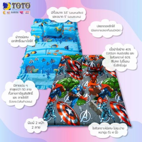 ความหนาที่นอนประมาณ 4 นิ้ว / สามารถถอดปลอกซักได้ / ลายลิขสิทธิ์แท้100%