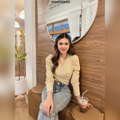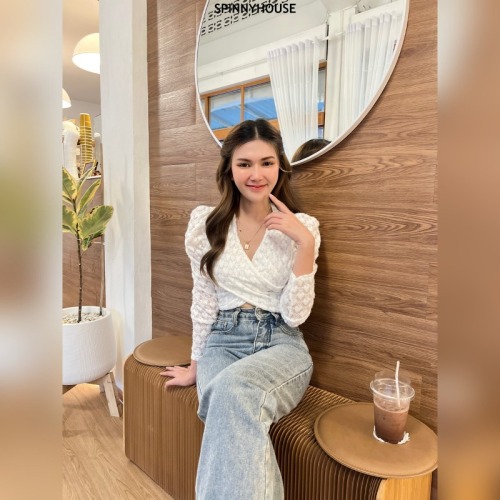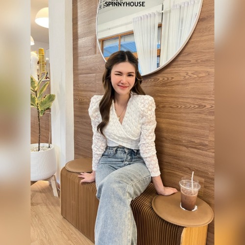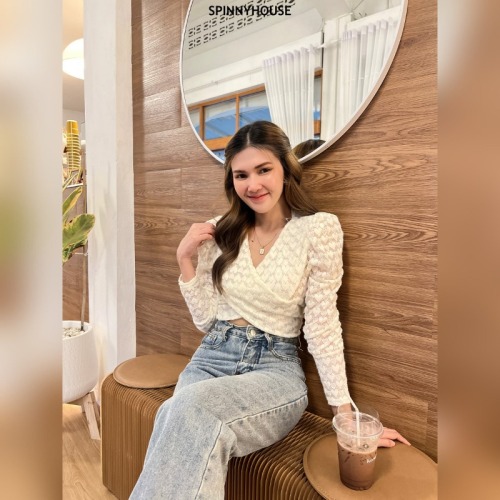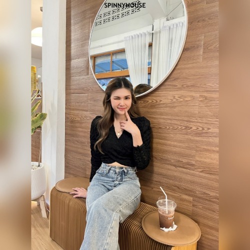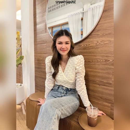 ติดกันเป็บแถบๆ heart and arrow งานเสื้อลูกไม้ทรงคอวีแขนยาว เป็นงานลายลูกไม้รูปหัวใจน้า เก๋ดูแพง เป็นงานตามกระแสแฟชั่น เป็นงานลูกไม้ผ้ายืด เป็นขนาดฟรีไซส์