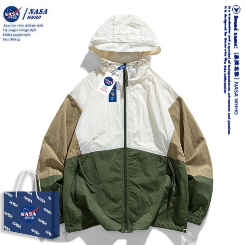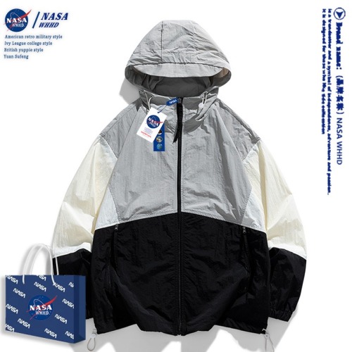 NASA WHHD ญี่ปุ่นแฟชั่นเสื้อผ้ากันแดดชายคู่หลวมน้ำตีสีป้องกันรังสีอัลตราไวโอเลตแจ็คเก็ตคลุมด้วยผ้านักเรียน NASA WHHD Japanese fashion sun protection clothing for male couple loose tide bump color UV protection hooded coat for students 【23-7709】Black 3XL