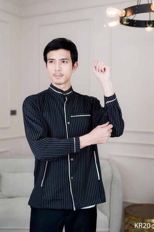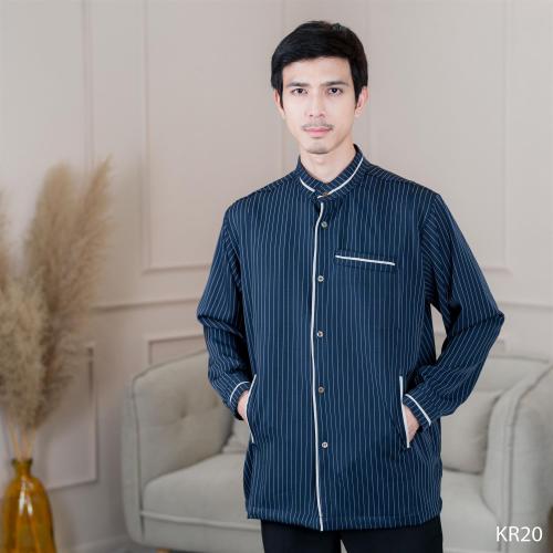 เสื้อกุรงชาย ผ้าคอนตอนเจอร์ซี่ ลายทางตรง งานกระดุมด้านหน้าสามารถถอดได้ ปลายแขนมีกระดุมทั้ง 2 ข้าง เนื้อผ้ามีน้ำหนัก ใส่แล้วหล่อเท่ ดูดีS :อก 42 นิ้ว ยาว 27.5 นิ้วM :อก 46 นิ้ว ยาว 30 นิ้วL :อก 50 นิ้ว ยาว 30 นิ้วXL :อก 52 นิ้ว ยาว 31 นิ้ว