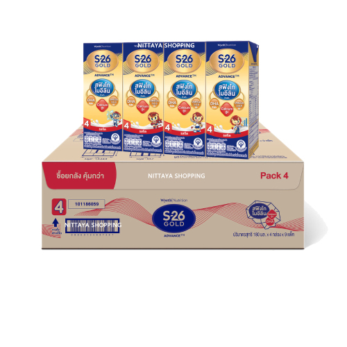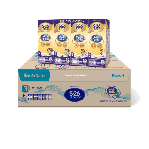 (ขายราคาเหมาลัง) S-26 Gold UHT Formula 3 and 4 เอส-26 โกลด์ ยูเอชที สูตร 3 และ 4 รสจืด 180 มล. (36 กล่อง/ลัง)