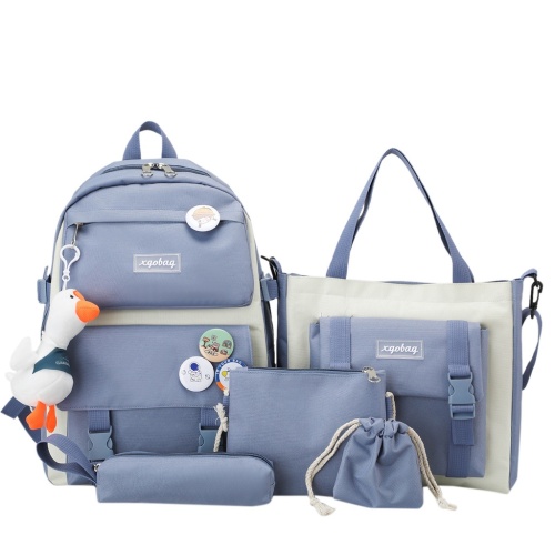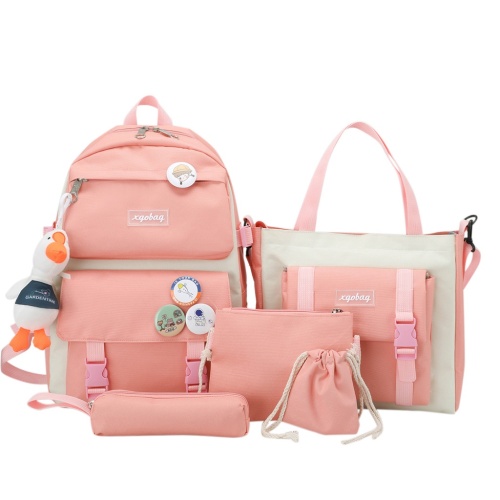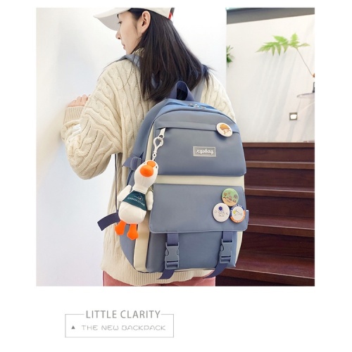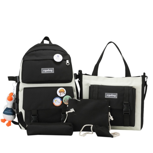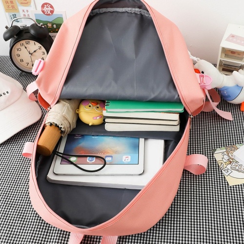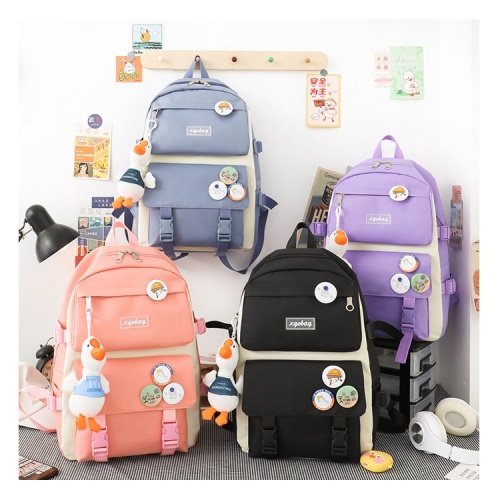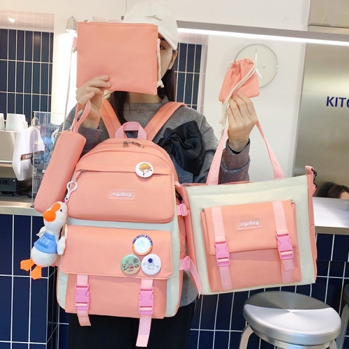 (ไม่มีจี้)ใหม่ผ้าใบกระเป๋าเป้สะพายหลังหญิงเกาหลีฮาราจูกุความจุขนาดใหญ่สี่ชิ้นนักเรียนมัธยมกระเป๋าเป้สะพายหลังกระเป๋านักเรียน