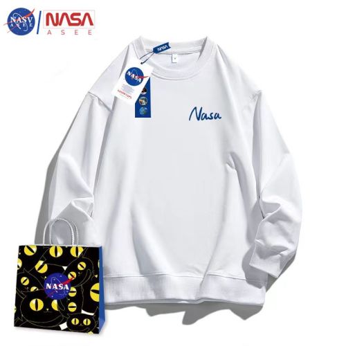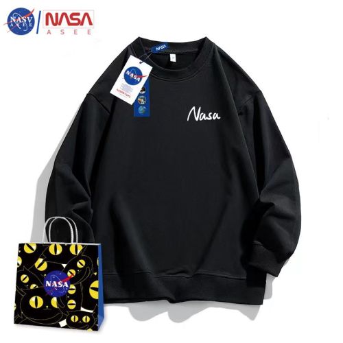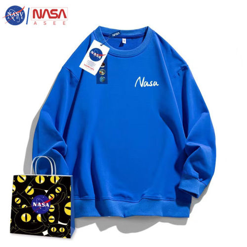 นาซ่าร่วมแฟชั่นแบรนด์เสื้อกันหนาวที่เรียบง่ายชายและหญิงคู่หลวมกีฬาลำลองแขนยาวคลื่น blue M