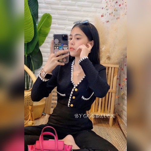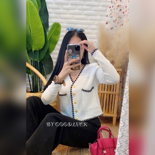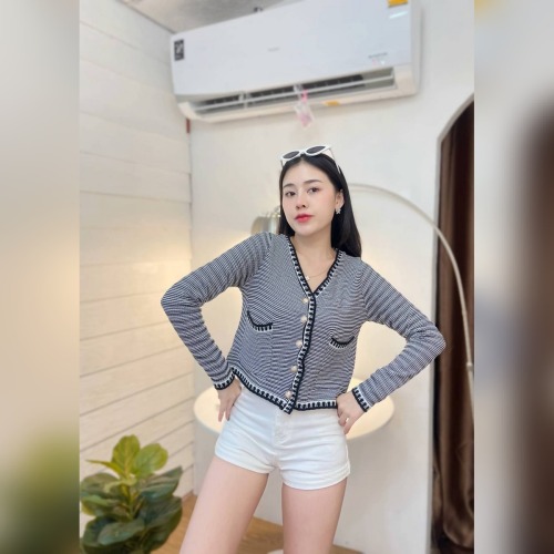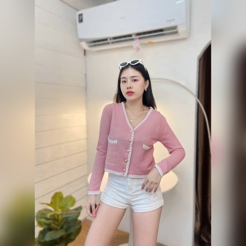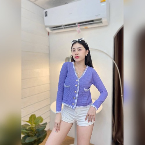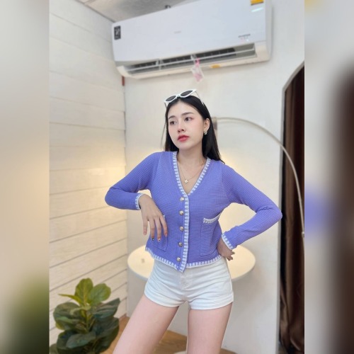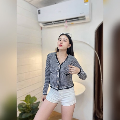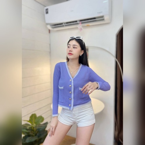เสื้อคลุมไหมพรม เนื้อผ้าบาง เพิ่มดีเทลกระเป๋า 💡 ติดกระดุมทอง ดูแพงไฮโซมากแม่ ทรงคอวี ใส่สบาย รุ่น ฮาวายแขนยาว