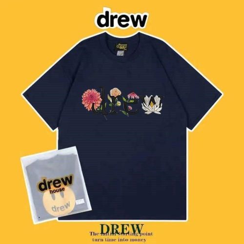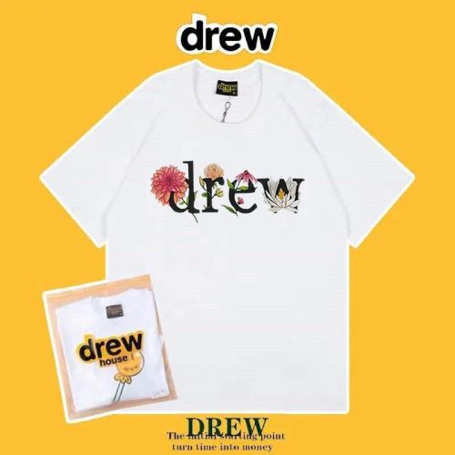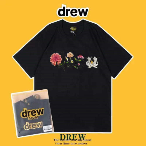 Drew house Justin Bieber เสื้อยืดแขนสั้นชายตัวอักษรดอกไม้หญิงแบรนด์น้ำคู่ ins หลวมแขนสั้นด้านบนนักเรียน Drew house Justin Bieber Short Sleeve T-shirt Male Alphabet Flower female hipster couple Instagram Loose short sleeve top student White S