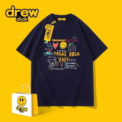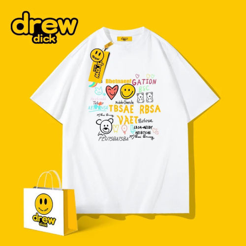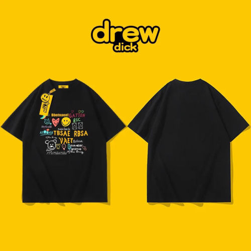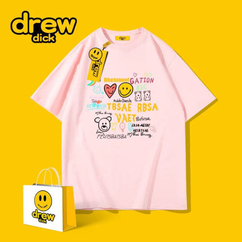 Drew dick รอบคอแขนสั้นเสื้อยืดผู้ชายการ์ตูนกราฟฟิตีแฟชั่นแบรนด์หลวม Oversize คู่แต่งตัวครึ่งแขนด้านบนนักเรียน Drew dick crew neck short sleeve T-shirt men's cartoon Graffiti Hipster loose Oversize couple half sleeve top student Pink 3XL