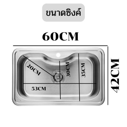 ️ขนาดเจาะเคาร์เตอร์ที่ควรเจาะ 56 x 38 ซม. (ลดจากขนาดอ่างด้านละ 2 ซม)