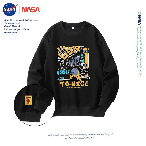 NASA ร่วมแบรนด์เสื้อกันหนาวคอกลมผู้ชายใหม่อินเทรนด์แบรนด์ฟุตบอลแชมป์เปี้ยนพิมพ์เสื้อกันหนาวผู้ชายและผู้หญิงคู่สบาย ๆ หลวมกีฬาแขนยาวเสื้อยืดนักเรียน NASA joint crew-neck hoodie men's new fashion brand football champion printed pullover hoodie men and women couples casual loose sports long-sleeved T-shirt students Black 4XL