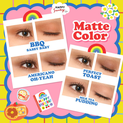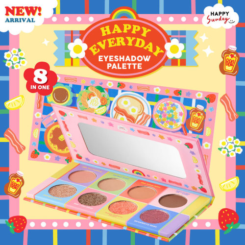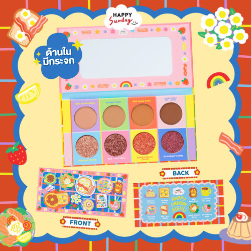 HAPPY SUNDAY Happy Everyday Eyeshadow Palette 1pc พาเลทอายแชโดว์โทนส้มน้ำตาล 8 เฉดสี มีทั้งเนื้อแมทและเนื้อกลิตเตอร์ เนื้อเนียน เกลี่ยง่าย พิกเมนท์ชัด ช่วยสร้างความโดดเด่นให้กับดวงตา สามารถใช้ได้ทั้งใน Everyday Look และครีเอทได้อีกหลายลุคสวยได้ในพาเลทเดียว มาในคอนเซปท์ Sunday Breakfast พร้อมแพ็คเกจน่ารักสดใสสไตล์ HAPPY SUNDAY