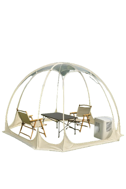 เพิ่มความหรูหราและสะดวกสบายให้กับประสบการณ์การพักผ่อนกับเต็นท์โดมใส วิมานแอร์ ที่สามารถติดตั้งง่ายดายและใช้ได้ในทุกที่ มาพร้อมกับเครื่องปรับอากาศเคลื่อนที่ประสิทธิภาพสูง ขนาด 3000 BTU, 9000 BTU, และ 18000 BTU ที่ทำงานเสียงเบาและประหยัดไฟ