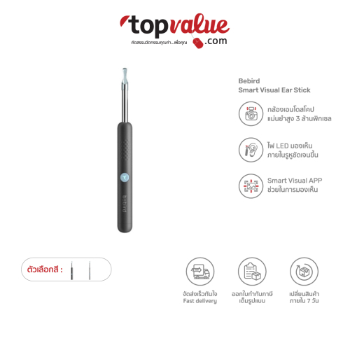 Xiaomi Bebird Smart Visual Ear Stick R1 หรือ ไม้แคะหูอัจฉริยะ R1 ของแท้จาก Bebird (สินค้าจำหน่ายบนเว็บ Xiaomi Youpin) สัมผัสนวัตกรรมใหม่ในการแคะหู ติดตั้งกล้องเอนโดสโคป ความแม่นยำสูง 3 ล้านพิกเซล ให้ภาพคมชัด Smart Visual App ช่วยให้การทำงานดียิ่งขึ้น มีความปลอดภัย มองเห็นภายในหูที่ต้องการทำความสะอาดได้อย่างชัดเจน ชิป Wifi ความเร็วสูง ส่งข้อมูลลื่นไหล ไม่สะดุด ถ่ายรูปและบันทึกวิดีโอได้ การควบคุมอุณหภูมิอัจฉริยะ ไฟ LED ส่องสว่าง หัวแคะหูออกแบบแน่นหนา ป้องกันลื่นหลุดมือ น้ำหนักเบาเพียง 13 กรัม จับกระชับมือ แบตเตอรี่ลิเธียม ชาร์จหนึ่งครั้งใช้ได้ยาวนาน การันตีด้วยใบรับรองคุณภาพจากหลายสถาบัน