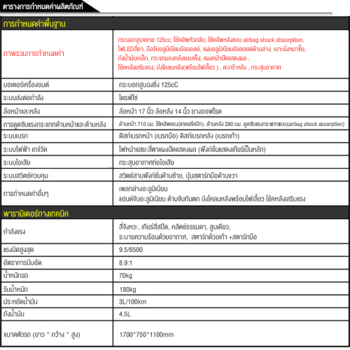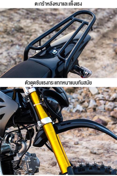 มอเตอร์ไซค์ออฟโรด 125cc(สี่จังหวะ, เกียร์สี่สปีด, คลัตช์ธรรมดา, สูบเดียว, ระบายความร้อนด้วยอากาศ, สตาร์ทด้วยเท้า +สตาร์ทมือ )