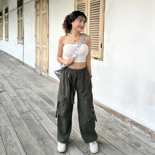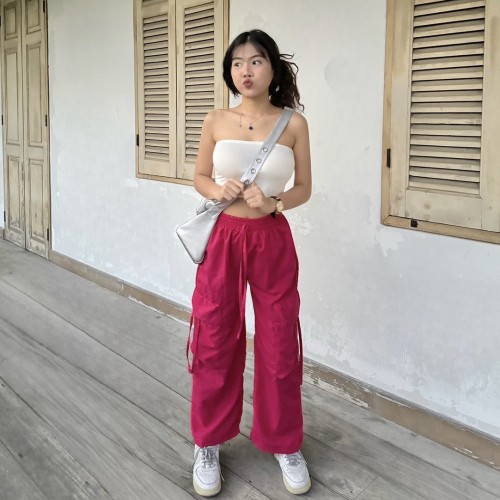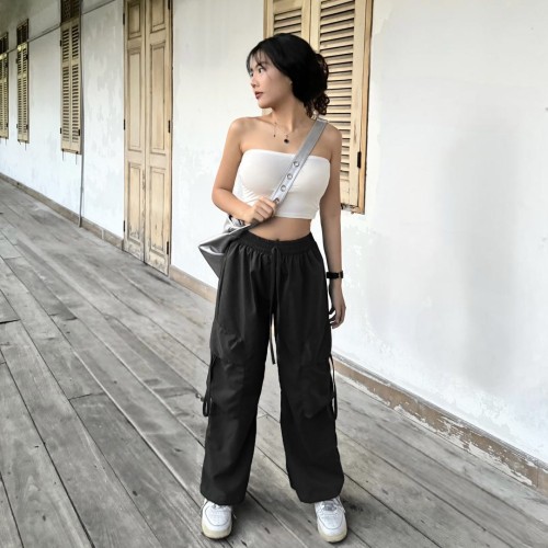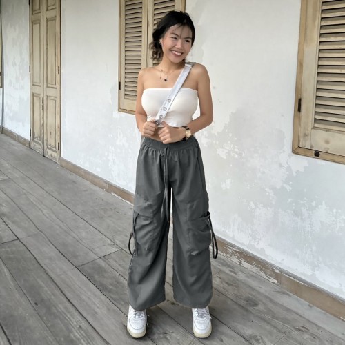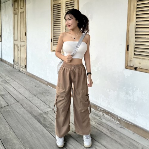 กางเกงคาร์โก้ ทรงกระบอก แต่งเชือกกระเป๋ารูดได้ 💘 ทรงเอวยางยืด สไตล์ y2k มากแม่ ใส่กับอะไรก้เข้า รุ่น กางเกงโจอี้