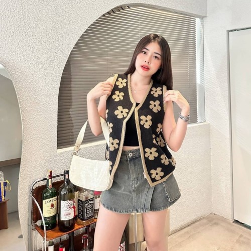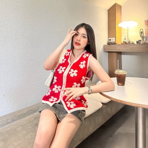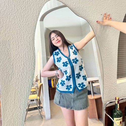 รักในความน่ารักของนาง งานเสื้อกั๊กแขนกุด งานผ้ไหมพรมแต่งทอลายดอกตัดสี เป็นงานแต่งซิปหน้า สวยเก๋ มีสไตล์ เนื้อผ้านุ่ม เป็นขนาดฟรีไซร้