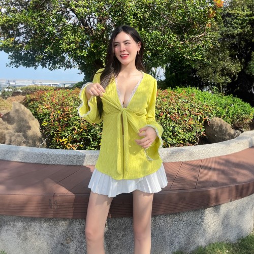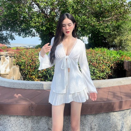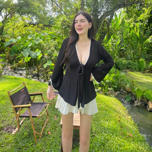 เสื้อแขนยาว แต่งลูกไม้ ผ้าเปลือกไม้ 📷 ไม่บางมากไม่โป๊ ใส่สบาย แต่งขอบลูกไม้แอบเซ็กซี่เว่อร์ สายคาเฟ่ สายเที่ยวทะเล ต้องมีค้าบ คลุมกันแดดกันลม สาวอวบใส่ได้จ้า