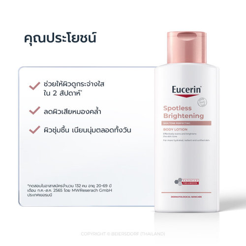 Eucerin Spotless Brightening Skin Tone Perfecting Body Lotion 250ml ผลิตภัณฑ์บำรุงผิวกาย ฟื้นบำรุงผิวกายจากผิวคล้ำเสียสะสม ลดเลือนจุดด่างดำ และสีผิวไม่สม่ำเสมอได้อย่างมีประสิทธิภาพ
