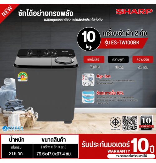 เครื่องซักผ้า 2 ถัง พลังซักปั่น มั่นใจในความสะอาด