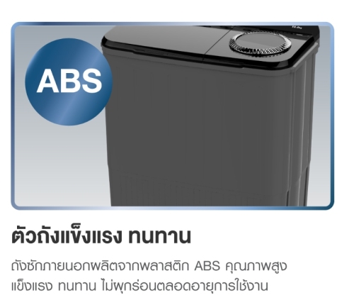 • ตัวถังแข็งแรง ทนทาน ถังซักภายนอกผลิตจากพลาสติก ABS คุณภาพสูง แข็งแรง ทนทาน ไม่ผุกร่อนตลอดอายุการใช้งาน