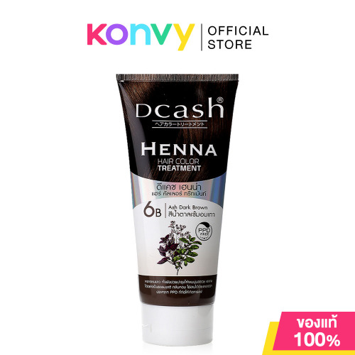 Dcash Henna Hair Color Treatment For Women 150ml #Ash Dark Brown ทรีทเมนท์เปลี่ยนสีผม ปราศจากแอมโมเนีย และไฮโดรเจน เปอร์ออกไซด์ ด้วยส่วนผสมทางพฤกษศาสตร์ สารสกัดจากใบเฮนน่า ช่วยพรางผมขาว เส้นผมนุ่มสลวย ไม่แห้งเสีย มอบสีผมสวยเงางาม พร้อมกลิ่นหอม