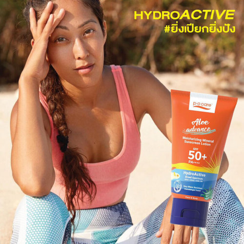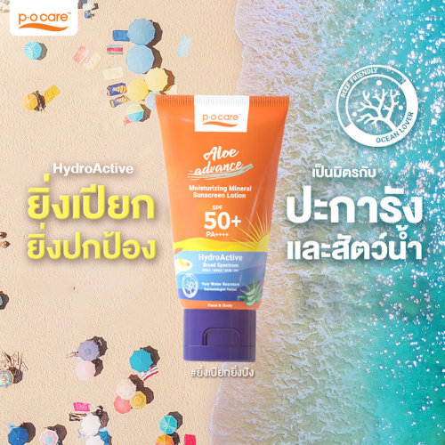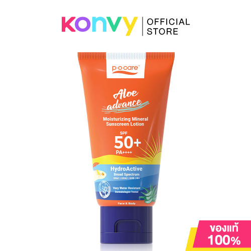 P.O.CARE Aloe Advance Mineral Sunscreen SPF50 PA+++ 45ml โลชั่นกันแดด เนื้อบางเบา ซึมซาบเร็ว แห้งไว ไม่เหนียวเหนอะหนะ ปกป้องผิวอย่างเต็มประสิทธิภาพจากรังสีUVA1/UVA2/UVB ด้วยค่า SPF50+ PA++++ พร้อมสารสกัดจากธรรมชาติที่ช่วยปกป้องผิวจากมลภาวะ(PM2.5) และเทคโนโลยี HydroActive กันน้ำ กันเหงื่อ ช่วยบำรุงผิวให้นุ่มชุ่มชื้นตลอดวัน ปราศจากสารที่ทำร้ายปะการังและสิ่งแวดล้อม