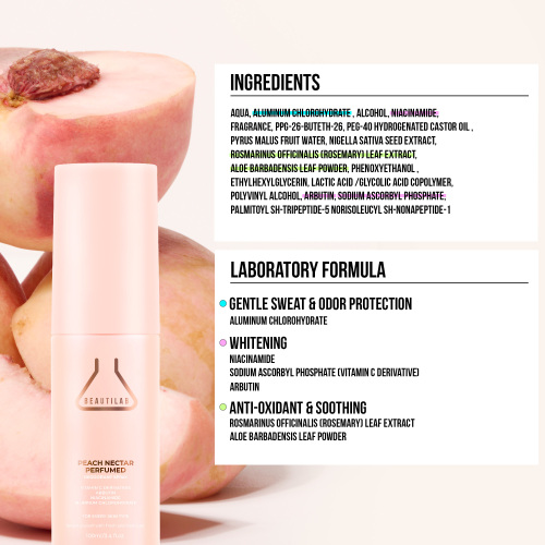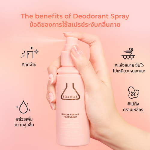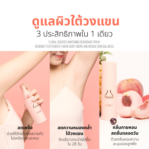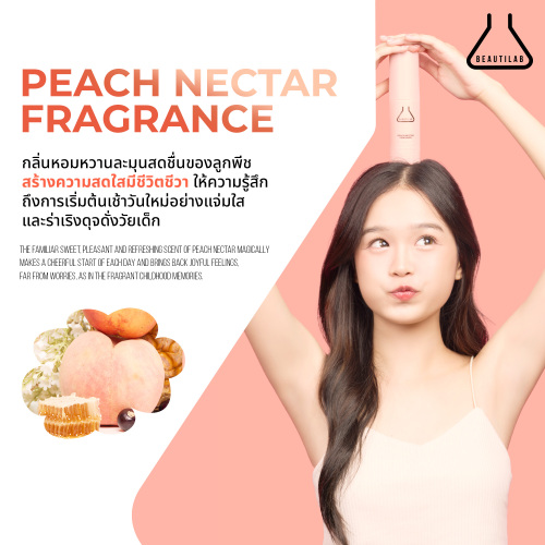 - กลิ่นกายหอมสดชื่นตลอดวัน ด้วยกลิ่นหอมหวานละมุนของลูกพีช