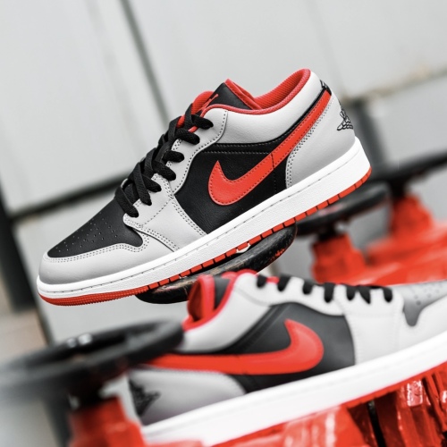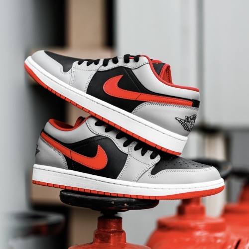 รองเท้า[TRENDX] NIKE AIR JORDAN 1 LOW 'BLACK LIGHT SMOKE GREY GYM RED' (553558-060) 46