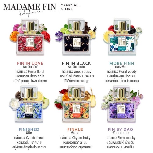 น้ำหอม CLASSIC มาดามฟิน มี 6 กลิ่น ️สีแดง Fin in Love สีดำ Fin in Black สีเขียว More finn สีส้ม Finnale สีม่วง Fin by Dao สีน้ำเงิน Finished