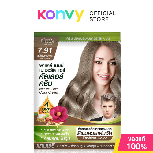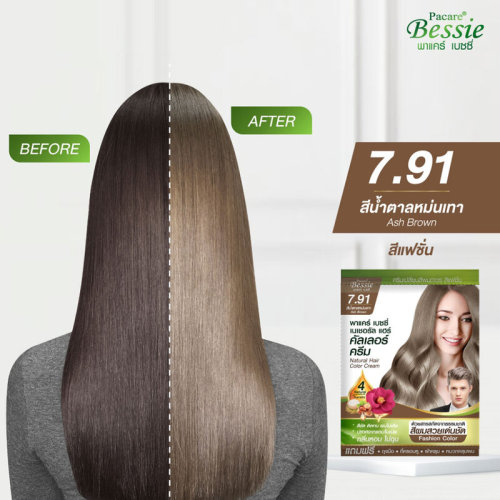 Pacare Bessie Natural Hair Color Cream 30ml #Ash Brown 7.91 ครีมเปลี่ยนสีผม พรางผมขาวให้แนบสนิทอย่างเป็นธรรมชาติ ให้สีผมสวยเด่นชัด มีประสิทธิภาพช่วยล็อคสีผมให้ติดทนนาน รวมพลังสารสกัดจากธรรมชาติกว่า 4 ชนิด ทำหน้าที่ช่วยดูแลเส้นผมทั้งในขณะทำสีและบำรุงผมให้แลดูสุขภาพดีหลังทำสี มอบสัมผัสผมนุ่มลื่นประกายเงางาม กลิ่นหอมผ่อนคลาย ไม่ฉุน