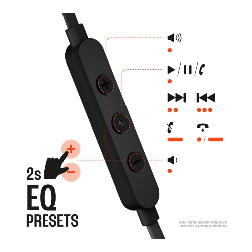ควบคุมการเล่นเพลงและระดับเสียงโดยใช้รีโมทคอนโทรลสามปุ่มที่สะดวกสบาย เมื่อคุณมีสายเรียกเข้าก็สามารถตอบรับด้วยไมโครโฟนในตัวได้ทันที