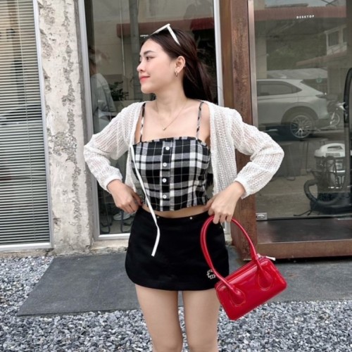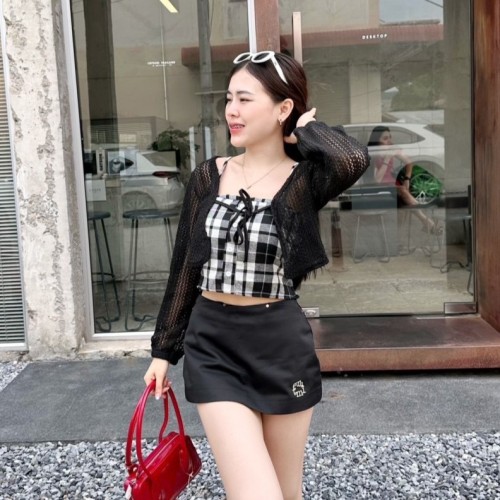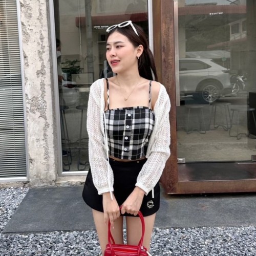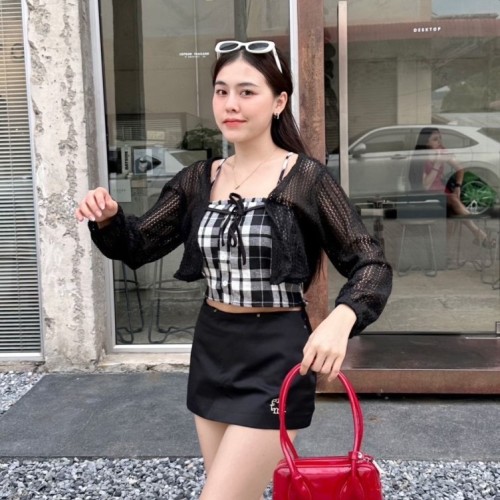 ซิกเนเจอร์สาวกสาวแฟชั่นตามติดเทรนกระแส งานที่กำลังมาเข้ากับช่วงอากาศ แพคคู่สายเดี่ยวกับเสื้อคลุมตาข่ายด้ายถักเป็นงานเนื้อผ้านุ่ม ไม่แข็ง เป็นขนาดฟรีไซส์