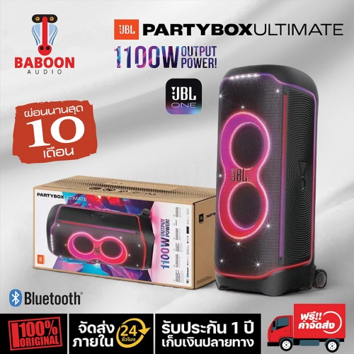 JBL PartyBox Ultimate เป็นลำโพงปาร์ตี้แบบ 3 ทาง ที่จะทำให้พื้นที่กิจกรรมของคุณเต็มไปด้วยเอกลักษณ์เสียง Original JBL Pro Sound ด้วยกำลังขับสูงสุดถึง 1100 วัตต์ (RMS) เสริมด้วย Dolby Atmos ผ่านการเชื่อมต่อ Wi-Fi เพื่อให้ทุกคนในงานปาร์ตี้ได้รับเสียงที่ทรงพลังแม้ว่าจะเร่งระดับเสียงสูงสุดก็ยังได้รับเสียงที่มีคุณภาพอยู่ เพิ่มความมีชีวิตชีวาด้วยการแสดงแสงสีและแฟรชที่เคลื่อนไหวไปตามจังหวะเพลง สนุกขึ้นไปอีกขั้นด้วยอินพุตสำหรับไมโครโฟนสองตัวและกีตาร์หนึ่งตัว ที่จะช่วยเพิ่มความหลากหลายให้กับปาร์ตี้ด้วยการร้องและเล่น มาพร้อม JBL PartyPad ที่ให้คุณใช้เอฟเฟกต์แสนสนุกด้วยคุณภาพระดับ DJ