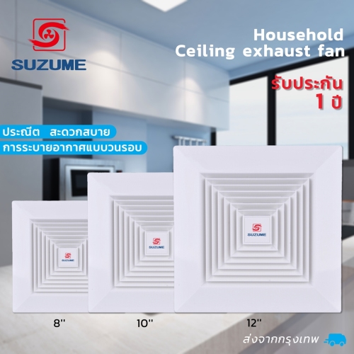 SUZUME 1ปี รับประกัน พัดลมดูดอากาศ พัดลมระบายอากาศ 220v พัดลมดูดอากาศเพดาน 8นิ้ว 10นิ้ว12นิ้ว พัดลมดูดอากาศติดเพดาน