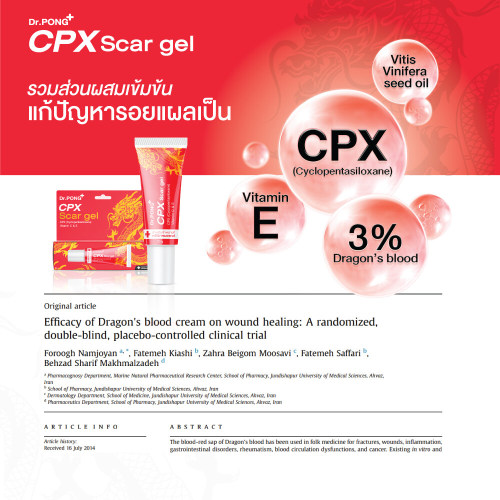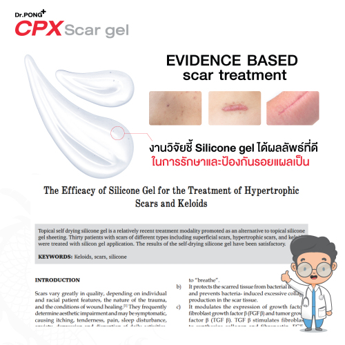 CPX Silicone เป็นเจลทางการแพทย์ มีส่วนผสมที่รับรองทางงานวิจัยสามารถลดเลือนรอยแผลเป็นได้จริง