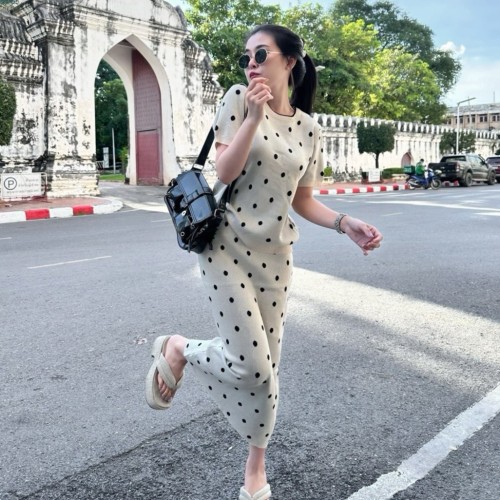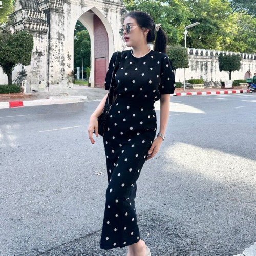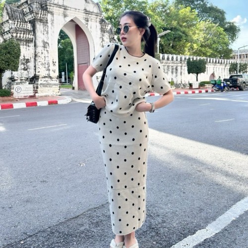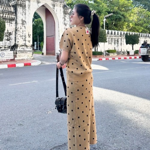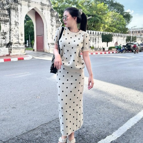 จัดเข้ามาเป็นชุดตกใจ งานตอบ โจทย์สาวกสาวแฟชั่น งานนำเทรนตามกระแส งานเซตแพ็คคู่แมทซ์มาแบบลงตัวเป็นเสื้อทรงแขนสั้นแพ็คมากับกระโปรงถ่วงยาว เป็นงานไหมพรมผ้านุ่ม เนื้อผ้าไม่หนา ผ้ายืดตามตัว เป็นขนาดฟรีไซส์