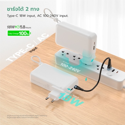 - ขาปลั๊กในตัวไว้สำหรับชาร์จไฟเข้าแบตสำรอง