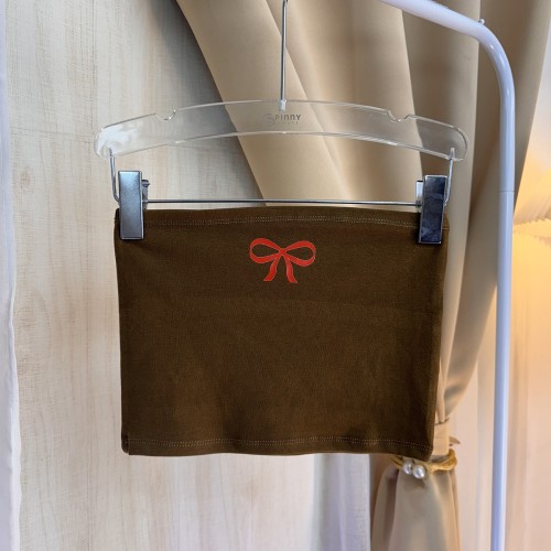 เสื้อครอปเกาะอก สกรีนโบว์แดง สกรีนแน่นไม่แตก 🫧เกาะอก ผ้ายืดยูนิ ทรงสวย แมตช์ได้หลายลุค รุ่น เกาะอกโบว์แดง